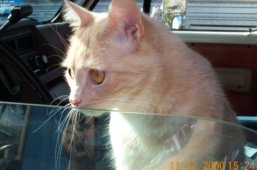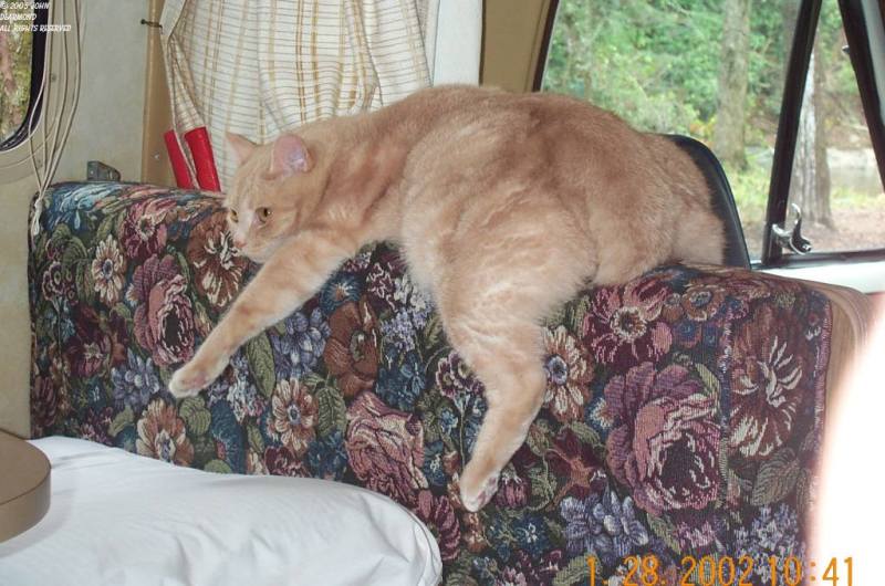Bob the Cat. I found Bob in a junkyard while I was buying salvage air conditioners. It was love at first sight. Half Persian and half Manx, Bob was still attached to his mother and was small enough to sit in my closed hand. When we started home from the salvage yard and he popped up on the dashboard to see what was going on, I knew I had a winner. He has ruled me since! Bob is a great buddy, is a world traveler, is a hell of a mouser and is cute as heck. I thought the least I could do would be to give him his own web page. Enjoy. |