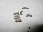 Here is our plunger with the collapsed spring that I expected to find. The ring to the left is the moveable contact that makes up the circuit when it touches the two studs seen in the photo above. | |||||||