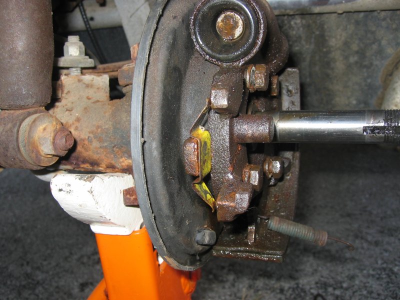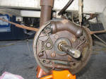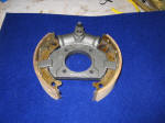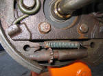 | Turning the Adjuster | The front assembly "as-found" Note carefully the placement of the shoe retractor hairpin springs. Note that the left and right springs are slightly different. Don't mix them up. | |||||||||||||||||