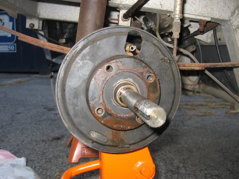 Step 6: Remove the 4 bolts holding the spider to the spindle. If the backing plate is greasy as mine was, remove it and clean it to prevent the grease from getting on the new shoes. |