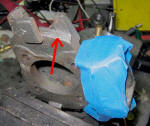 Here, the cylinder has been masked to protect it from grinding debris. The arrow points to the part that will be radiused. | |||||||