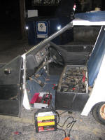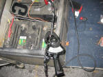 | My Cordless Battery Charger (TM) at work. Presently configured for 12 and 24 volts, I'm going to add a 48 and 72 volt option in the near future. |