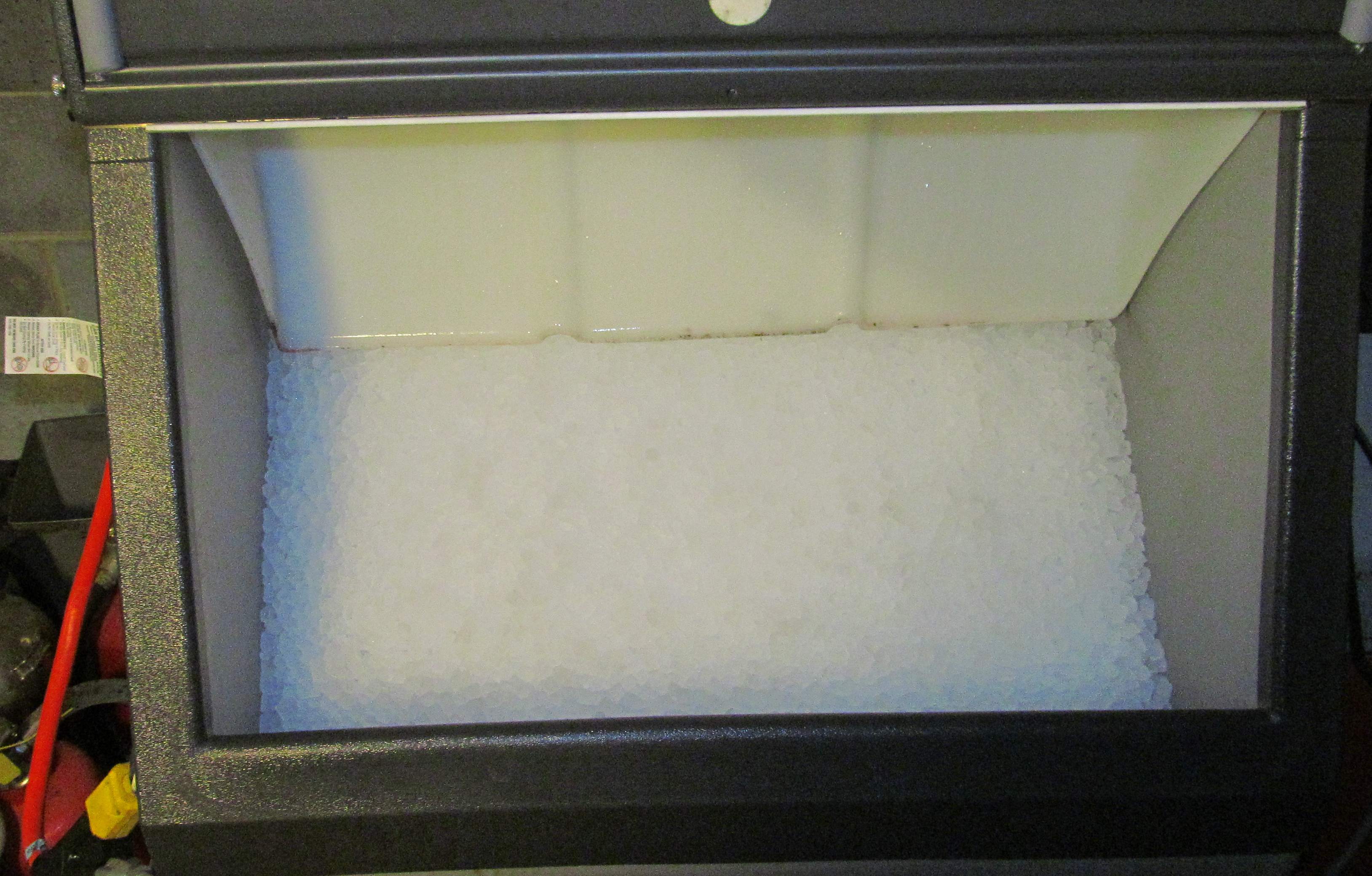 This photo shows the type of ice the machine makes. Crunchy pellets. Most customers prefer this kind of ice because it is easy to crunch on. And it packs tighter in the glass, requiring less product to fill the glass. It is the perfect ice for making homemade ice cream so you can do a brisk trade in bagged ice. |
