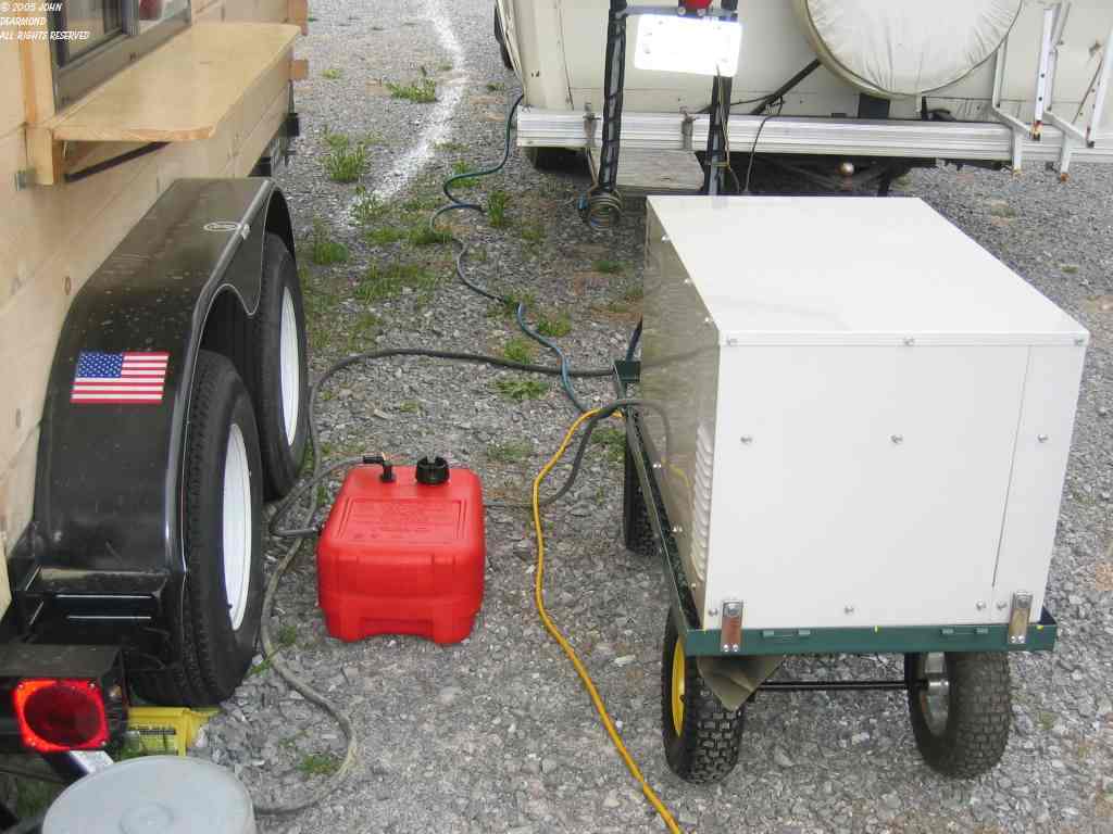 This Generator is for sale. It is a little different than the photos show in that the cheap pneumatic tires have been replaced with industrial castors and, of course, it shows a bit more wear and tear. This is the quietest generator of its size on the market. Leave it mounted on the cart and use it for stuff like home standby power or take it off and mount it in your RV. It is wired to supply 120/240 volts for standby power service. It can be rewired (I can do it for you if you like) for 120 volt only service for RV use or if you only need 120 volts. As you can see in this photo, the generator is set up to draw fuel from outboard motor fuel tanks. That way one doesn't have to mess with gas cans and pouring gasoline. Just unhook one tank when it's empty and connect another. This generator comes with three such tanks. $1000.00Location: Tellico Plains Shippable: NO. I will deliver within a 50 mile radius of Tellico Plains for an additional $100. I have a lift-gate truck so unloading will be no problem. Note: Needs new cranking battery. It comes with a paper copy of the owner's manual and a PDF of the service manual. Mobil 1 oil used exclusively. Terms: I deal only in cash or through a friend, PayPal. I do not and will not have a PayPal account so my friend handles that for me. For items that have to be picked up, cash is the preferable form of payment. No certified checks or other instruments accepted. Payment must be made in full before the item can be moved. Items sold as-is, where-is. No warranty expressed or implied. You may examine the item as much as you like and may have an expert examine it for defects. But once you buy it, it's yours with no warranty. First come, first served - the first person with the cash gets the goodies. If you want the item but cannot immediately come up with the cash, a deposit ($200 in this case) will hold the item for one week (7 days). The deposit is non-refundable. The deposit can be made through my friend's PayPal account or you can bring it to me. I have a bad back and bad knees so I will be of little help in loading this item. Plan on bringing a friend. I have hand trucks, dollies and other moving equipment; I simply cannot operate them anymore.