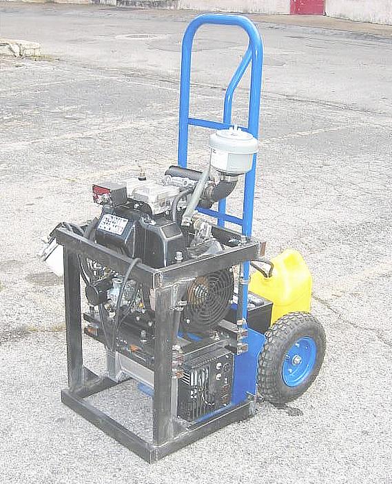 | This is my home-made 10kw diesel generator built around a Deutz Riggorini twin cylinder air cooled diesel engine and a 10 kW harmonic excited generator head. This generator is designed to be man-portable and easily transportable to the job site. It is fairly easily rolled around by one man. |