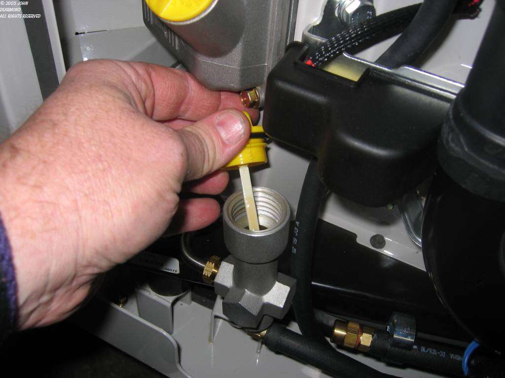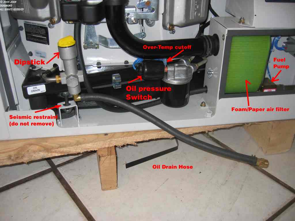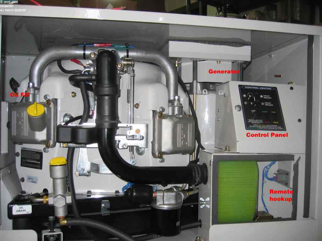 | A closer shot showing several features. The oil change system is especially nice. After having cursed the drain plug locations on various generators, I have nothing but praise for this system. |