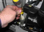 | Another view showing yet more features. As can be seen here, the oil change hose is simply unclipped, the cap removed and the hose lowered into a suitable container. |