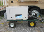 | This shows the generator deployed at a concession event. It is powering the concession stand, a commercial refrigerator and my RV. It is quiet enough to be located right next to the stand. Note the outboard motor gas tank. This tank can be changed out for another without shutting down the generator. |