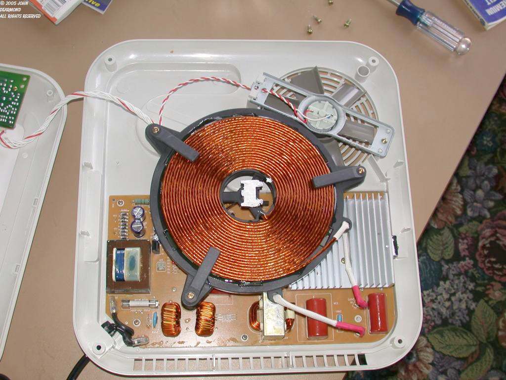 conditinoing capacity to begin with. In this section, I present a short dissection of an induction range that was sold by the QVC network for a time. I bought several non-working returns for a song. The easily fixed problem is visible below. |