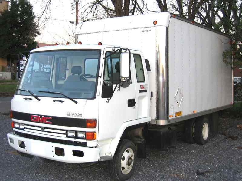 It is a GMC/Izuzu W-5 "Forward" Cab-over Medium Duty Truck. It is