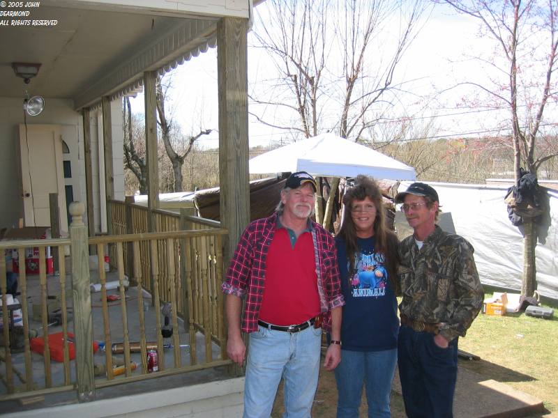 | Mike, Carla and "Worm" (Dave), the John G's crew beside the monsterized house. |