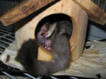 02/06/06: Joy and her beau Jake have had their first baby. Unfortunately as of this date, the baby isn't doing well. I first heard a new noise from the cage late this afternoon. I thought it was Joy goofing off. Tonight when I returned, the sound was much quieter. I looked in her hutch and saw the baby, out of the pouch, hairless and very weak. I watched over the next couple of hours to see if the baby would go back in the pouch. No such luck. Joy licks the baby but doesn't seem to do anything to help it along. I tried to feed it a bit of puppy formula that I'd used on a baby coon but it is too weak to take it. It's 1:00 am now and I'm afraid I've lost the baby. I haven't heard any sounds for half an hour now. I'm not going to disturb Joy anymore tonight. We'll see what happens in the AM. Some photos: |