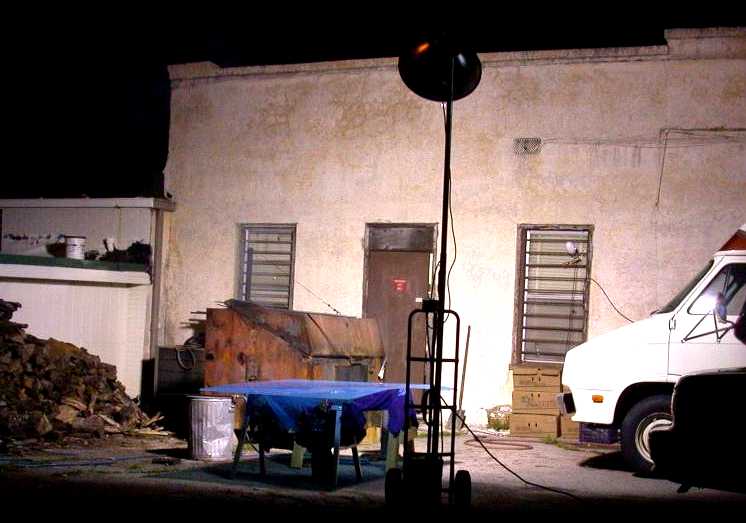 the brightest light I'd ever see. Time passed, my eyes got older and the wattage got higher. The light featured here is the current state of my art. This light features a 1000 watt Metal-Halide lamp, a telescoping mast that reaches about 25 feet, 50 feet of cord and two convenience outlets. A light this bright has several advantages. One can illuminate an entire room, even a large one, with one lamp. One can shine the light onto the ground beneath a car and the reflected light is bright enough to work under the car without additional lighting. One can illuminate a whole parking lot. The light can be telescoped up high enough to mostly keep the summer bugs above the work area. The pictured light is the first one I built about 7 years ago. Since then it has become popular. I have built several of these for contractors and even a public safety department. I have developed several standard versions: