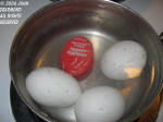 Finished, just like I like 'em. I like my boiled eggs with the yoke still dark yellow but not quite liquid. I do NOT like the yoke light yellow and dry. | ||