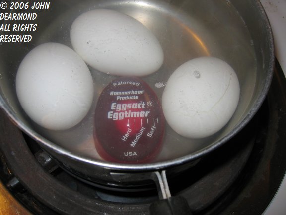 Starting out. The water is boiling and the eggs and timer have just been added. | ||