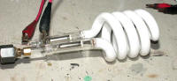 a fluorescent ballast. My next experiment will be to find a higher current ballast, perhaps for high intensity lamps, and give that a shot. |