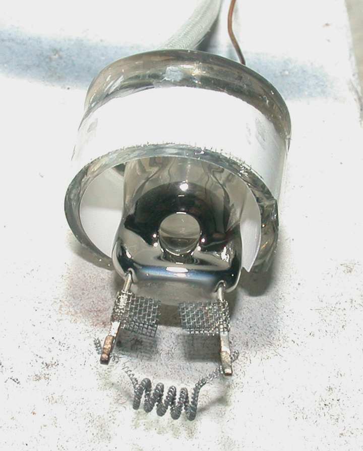 | Here is one of the original electrodes. No wonder fluorescent lamps burn out so quickly! |