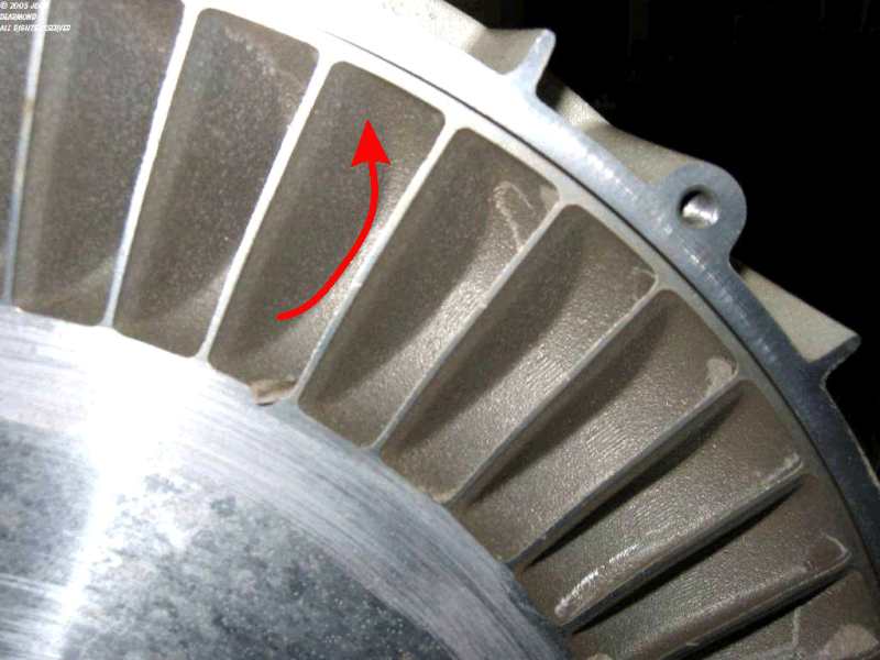 | Rotor Detail. Arrow shows the direction of the air flow. |
