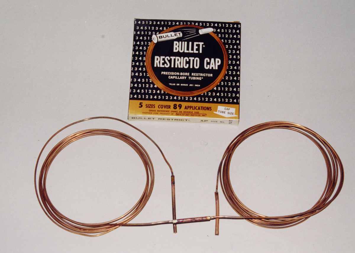 In this photo the joint has cooled and the junction between the capillary tubing and the larger tubing has been wrapped with electrical tape that serves as a strain relief. The capillary tubing will work-harden and break after only a couple of flexures at the silver-soldered joint.