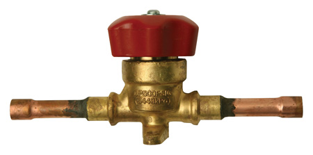 The system that I'm presenting here does all the above and more. The manifold cost about $100 to build, the thermocouple gauge about $150 and the diffusion pump around $300. The Welch vacuum pump came from an auction for $100 and required lots of TLC. For much less than $1000 one can build a vacuum system that rivals anything commercially available. Instead of multi-hundred dollar high vacuum valves from the likes of Swagelock, I use inexpensive packless diaphragm type refrigerant valves. These are ubiquitous to the refrigeration world and are quite inexpensive. The force to open and close the valve is transmitted through a stainless steel diaphragm, making leakage impossible.