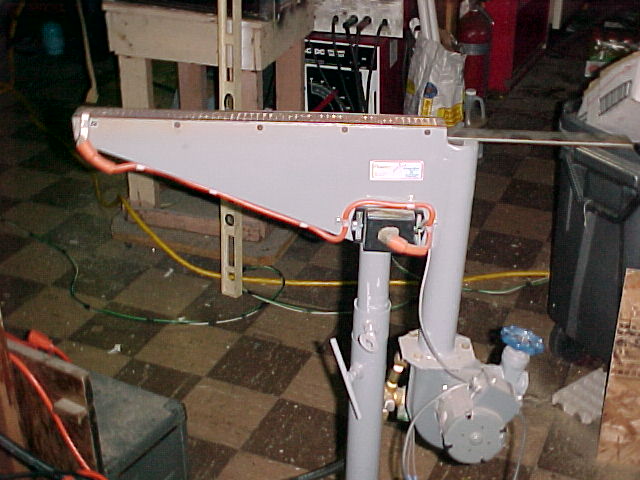 Next, foot pedal controlled. My shop is air conditioned and having the ribbon run all the time would have swamped the AC, not to mention costing a fortune. This also implies Auto ignition. Hit the pedal and the fire starts. Easy to adjust. Some commercially available ribbons are a real pain to adjust. Very cheap to build. As you'll see below, I even fabricated the burner screen from scratch which took me almost a whole weekend at the drill press to do. Doing it over again, I'd have spent the money for a replacement screen for a commercially made burner. |