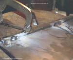 plus it's strong enough to resist the forces of a backfire. I have no special sheet metal tools so this metal was cut using an abrasive blade in my circle saw. It was dressed with a hand grinder and then jigged up and welded. |