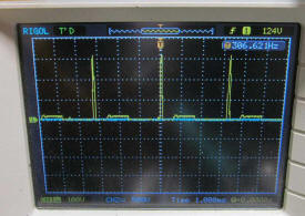 This shot shows the IGBT collector voltage. Notice how the waveform is almost identical to that of the secondary output above. This photo is of the output with no sparking occuring. |