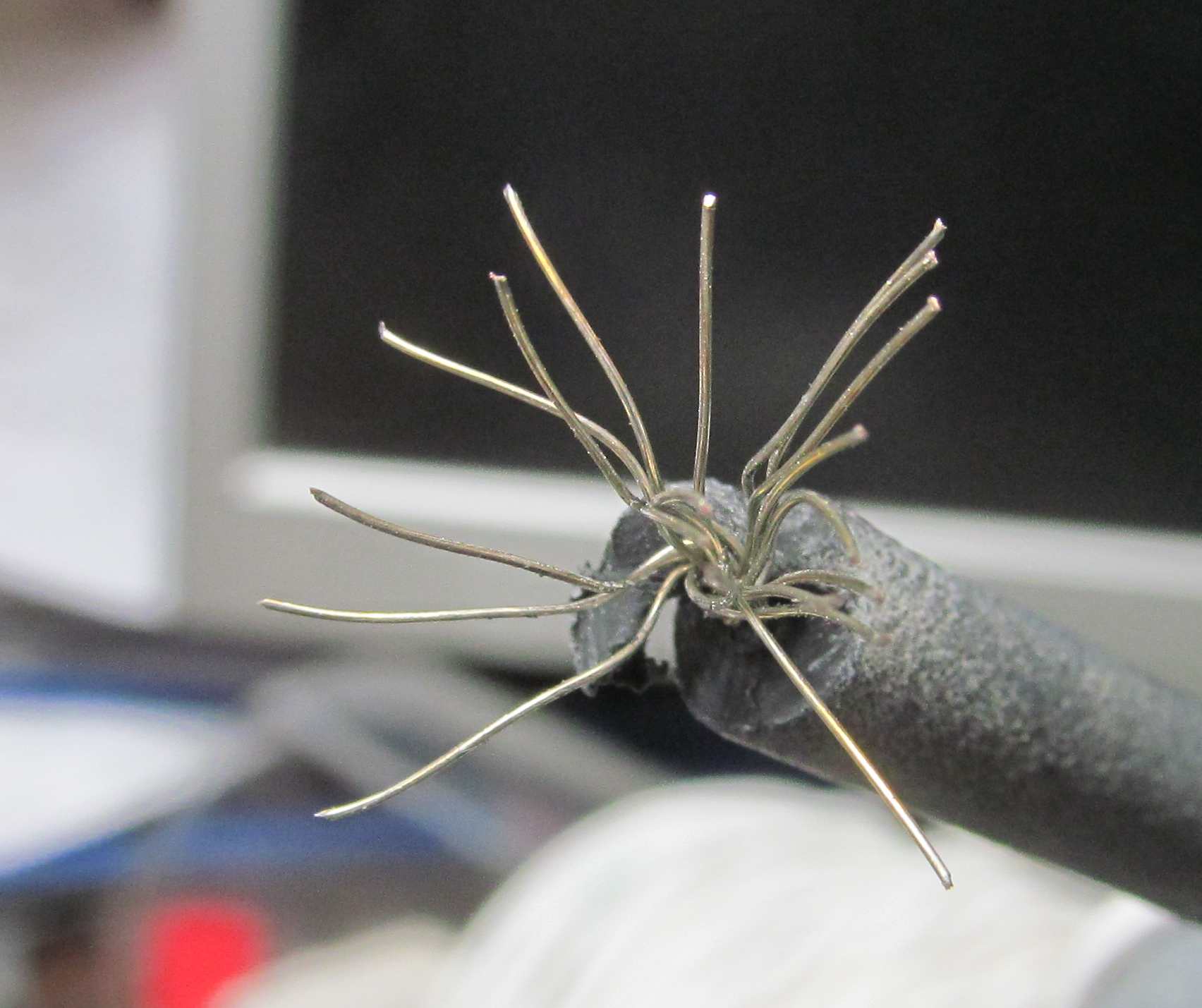 I added some stained glass jewels to the bottom. The space the coil a bit off the bottom and help to hold them in place.
