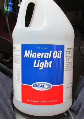 This is the mineral oil that I used, purchased from Tractor supply. It's a bit expensive at $20/gallon but it's convenient and easy to buy. Before pouring it over the coil, I put it in a pot and heated it to 250 deg and left it for a couple of hours to dry and de-aerate it. A considerable number of bubbles formed, indicating that this needed to be done.
