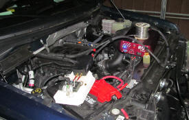 Living up here in the mountains like I do, a chain saw is a vital tool to be kept in the vehicle at all times so that one can cut his way in or out when trees fall across the road. I had a tiny little McCullough gas saw but it stank up the cab of my truck and was always hard to start. Not to mention having to keep fresh fuel in the thing. So I decided to go electric. So I ordered a Harbor Freight 2000 watt inverter that I'd had good results with in the past, some #2 welding cable, a few Anderson Connectors and a few solder type terminal lugs. Oh, and not to forget, the use of the incomparable FluxeonŽ Roy 1500 induction heater with flux concentrator. If you don't have an induction heater, a small butane torch will do in a pinch but it doesn't do nearly so neat a job. The lugs and Anderson can be had from Cloud Electric. The "175 amp" Anderson connector (you'll need 2 or 3) is part number DS-6325G5. The 2 gauge cable lug is part number BT-4802F. You'll need 2 of those. Finally, you'll need about 5 ft each of #2 welding cable in red and black. If you want to make a gonzo set of jumper cables, get about 10 more feet of each color and 2 500 amp battery clips from NAPA. The nifty thing about Anderson Connectors is that they're hermaphroditic. That is, they'll mate to each other. No such thing as a male and a female. This makes several things very convenient. One thing that is very nice to have is a jumper cable with clips on one end and the Anderson connector on the other. That kind of jumper isn't worth stealing except for its copper so you don't have to be so careful with it. It'll plug right into the Anderson connector we're about to install. And if you want to run the inverter on some other vehicle, just plug the jumper cable Anderson connector into the one on the inverter. OK, now that we have all that settled, let's get to work. |