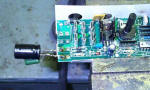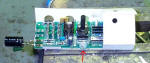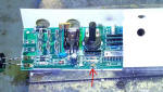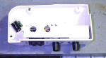 | The controller back in its plastic housing. The necessity of the long leads on the caps are now apparent. They are secured against vibration with yet another glob of RTV. |