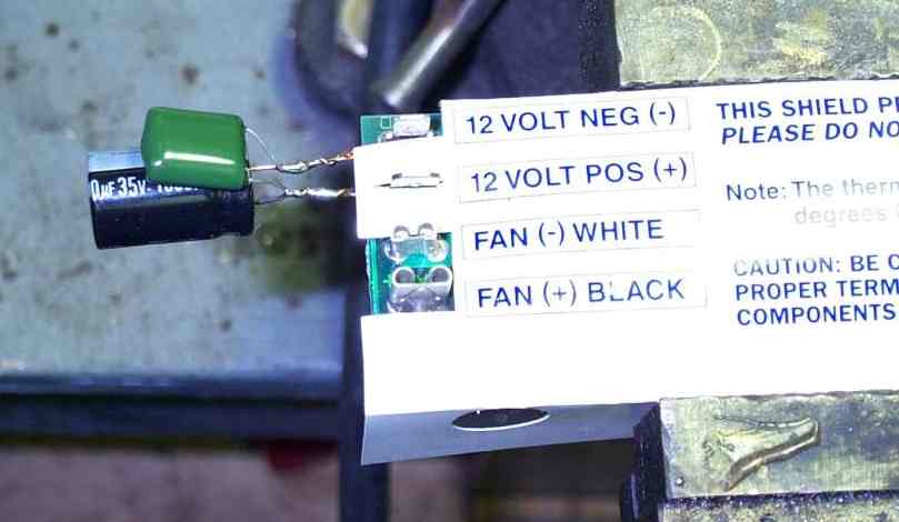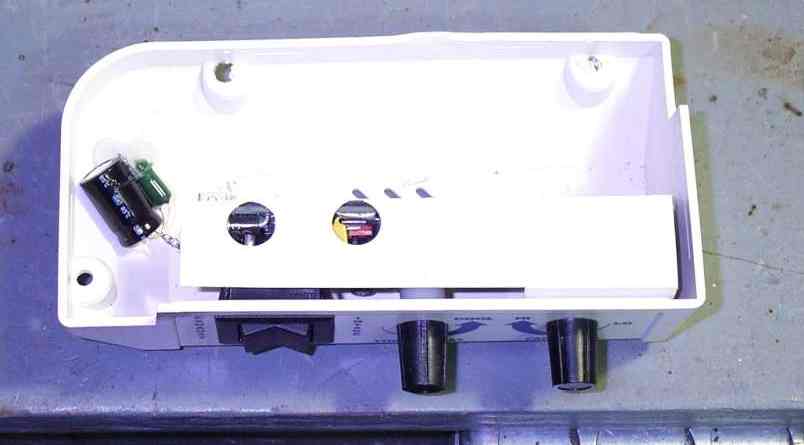 incoming power terminals to knock down the EMI. A 1000uF electrolytic to catch the gross