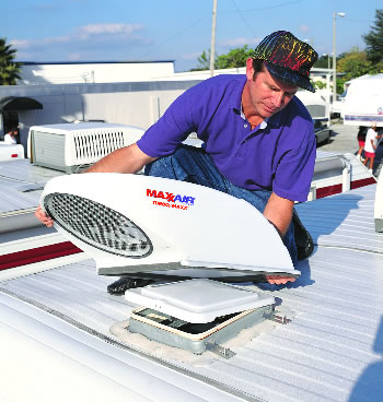 Unfortunately it had a couple of problems that were quite annoying. The first problem is that the thermostat cycles too rapidly. There is too little deadband in the electronic controls. Under the right conditions it can cycle every 4 or 5 minutes. Quite annoying when you're trying to sleep. Maxxair will provide a replacement control board if you ask but it's much more fun to solve the problem yourself. The second problem is that the Pulse Width Modulation (PWM) speed control emits a lot of electrical interference (EMI). In particular, it greatly affected my E-meter, making its readings erratic and pretty useless. This page documents my solutions to both of the problems. |