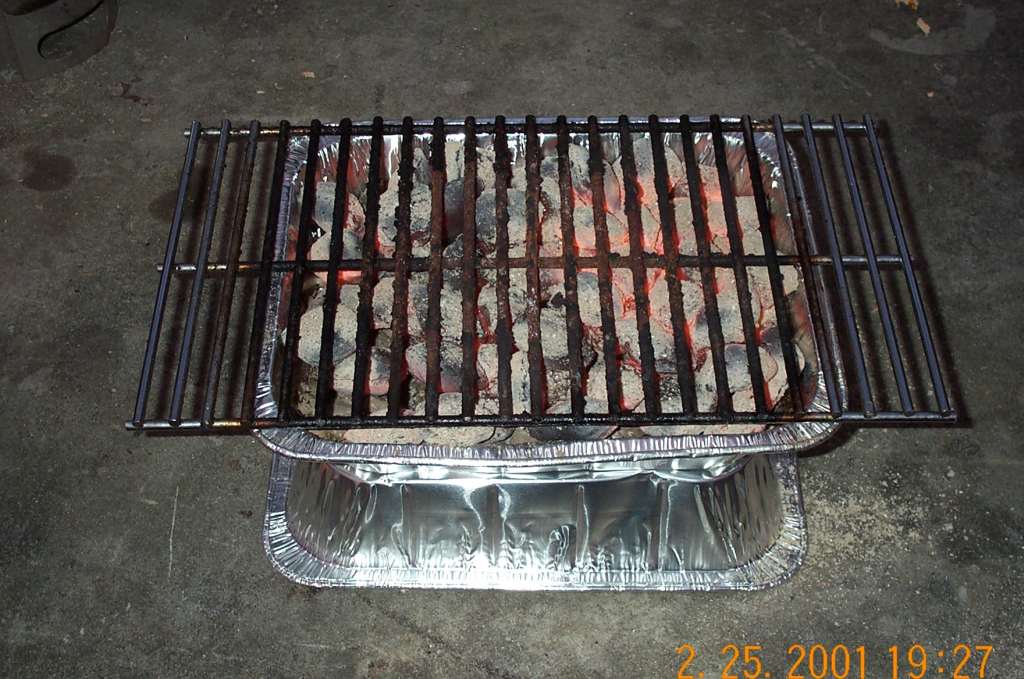 then the bottom pan isn't necessary. A thin layer of sand, dirt, gravel or whatever you can scoop up makes a base for the charcoal and keeps the heat away from the aluminum bottom. |
