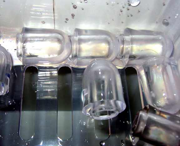 ![]() This is a photo of ice made with fresh distilled water. They're orange because I put the first batch in my big orange tea cup before thinking to grab the camera :-) Notice the total lack of air bubbles and the complete clarity. |
