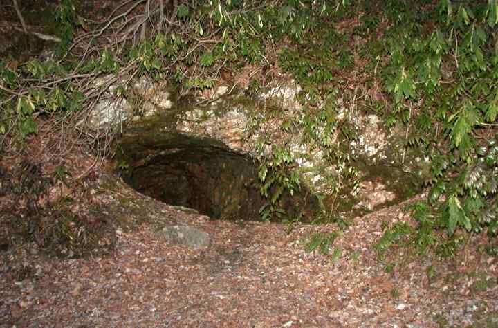 | This is the old quartz mine, located right outside the State Line CG. During WWII pure quartz for radio crystals was mined here. Unfortunately they filled in the vertical shaft so that all is left is this shallow horizontal shaft. |